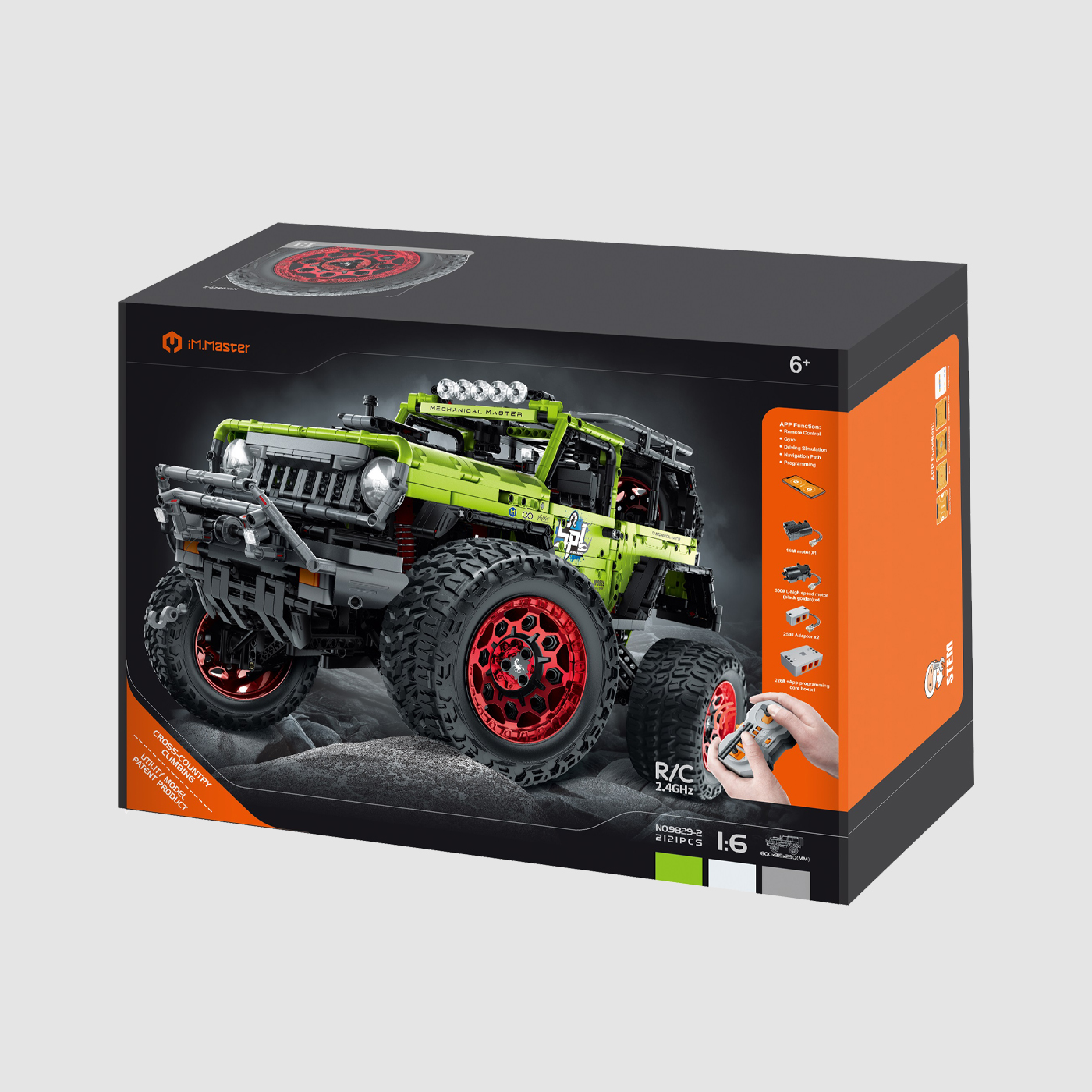 This rock crawler includes high torque side wheel motor, tank turning, differential walking, multi-link suspension system, automatic welcome pedal, tire hub using 12 processes, with independent research and development programming APP.